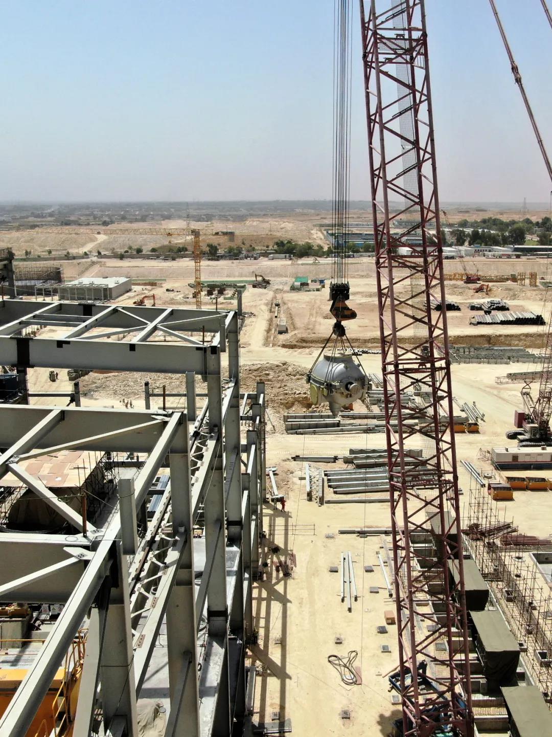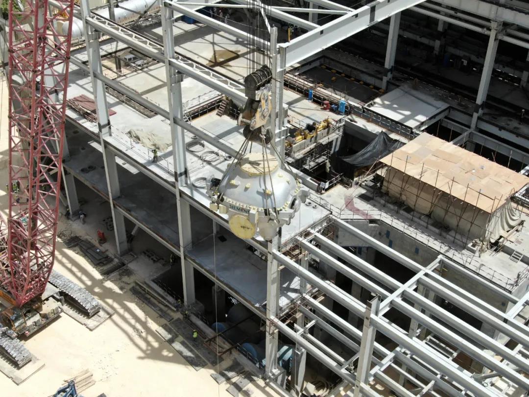 4月9日至10日,由西门子和哈电国际联合体承建的巴基斯坦贾姆肖罗项目,一号机组汽轮机高压缸和中压缸先后顺利吊装就位至汽机间15.5米运转层平台。 贾姆肖罗项目汽轮发电机组由德国西门子供货,汽轮机部分的高压缸和中压缸均为整体式供货,重量分别为128吨和180吨,现场采用直接整体吊装就位。本次吊装机械采用630t履带吊,吊装前项目团队对于机械超起工况荷载、起吊方案和行进步骤等内容做了周密的计算和部署,并对所有参与人员进行安全、技术交底培训,识别相关危险点及风险源。 吊装前一周,汽机高压缸及中压缸分别倒运至主厂房临侧预吊点。吊装实施前,相关施工、技术、起重及安全负责人对主吊、辅吊及其他机具、吊索进行了联合检查,确保万无一失。起吊过程中,设置专人指挥,分工明确、协调作业,认真落实吊装方案和技术要求,密切关注吊装物所处状态及起重设施的受力情况,切实履行好各项安全防范和应急预案措施,严格管控高、中压缸在提升、平移、旋转和下降等关键步 骤的施工工序,确保了整个吊装过程的顺利完成。 本次高、中压缸的顺利吊装,是继发电机定子吊装后完成的又一重大里程碑,为后续汽轮发电机组的顺利安装奠定了坚实的基础。目前,该项目大件吊装工作仍在紧锣密鼓的推进中,哈电国际贾姆肖罗项目全体成员将再接再厉,认真筹备,顺利完成后续除氧器和高加等重要设备的吊装就位工作。 文稿 | 王 路 摄影 | 陈炳安 编辑 | 范乐乐 审核 | 于美娜